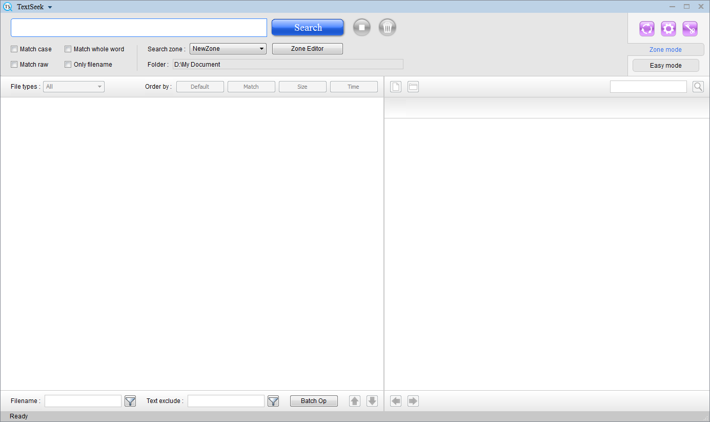 TextSeek bietet zwei Suchmodi: Zonenmodus und Einfacher Modus. Sie können den Modus wechseln, indem Sie oben rechts auf die Registerkartenschaltfläche klicken.
