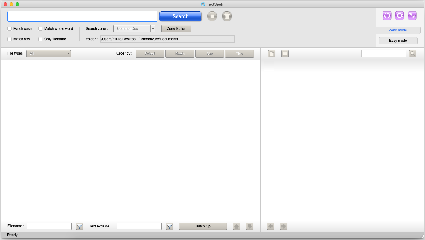 TextSeek bietet zwei Suchmodi: Zonenmodus und Einfacher Modus. Sie können den Modus wechseln, indem Sie oben rechts auf die Registerkartenschaltfläche klicken.
