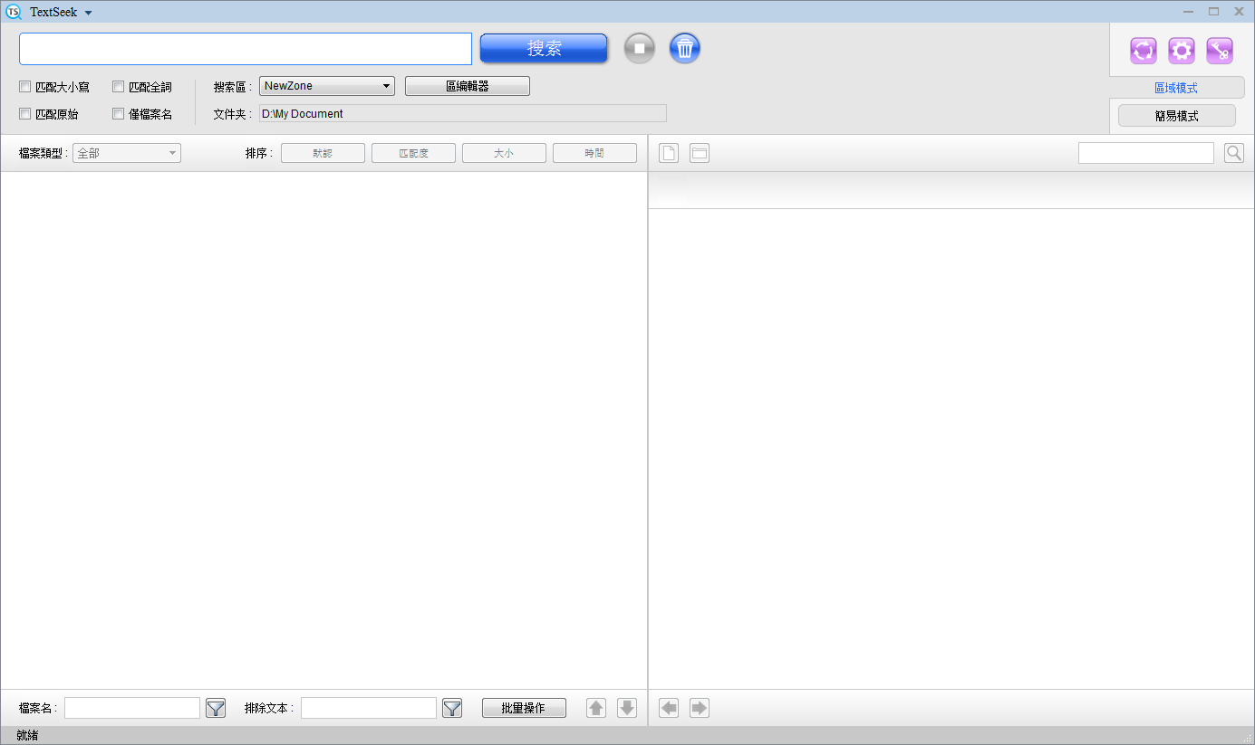 在嚮導頁面之後,TextSeek主介面將如下所示: