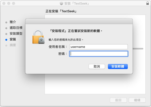 3、輸入使用者帳戶的密碼,點擊“安裝軟體”。