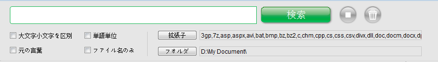 簡単モードは、一時使用モードです。エリア外のフォルダまたは頻繁に変わる検索範囲用に使われます。このモードでは、ユーザーが検索ボタンをクリックした後に文書のスキャンが始まるため、検索速度は遅くなります。しかし一致する部分を見つけるとすぐ検索結果を表示します。検索はユーザーが停止ボタンをクリック、または文書をすべてスキャンするまで続きます。"
