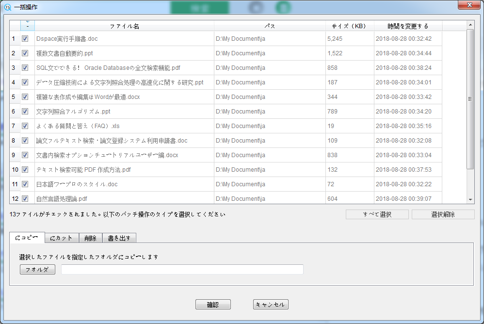 検索後、検索結果がある場合は、「一括操作」ボタンをクリックして、条件を満たすすべての検索結果をバッチ処理します。ポップアップウィンドウで、関連するすべてのファイルを指定したディレクトリにコピーして切り取るか、すべてを削除するか、すべての検索結果情報をエクスポートできます。