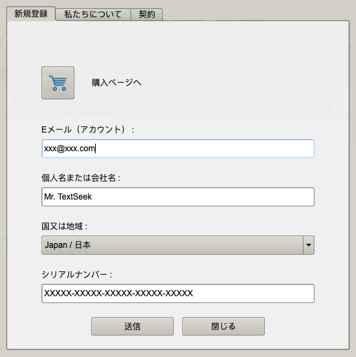 シリアル番号を購入した場合は、メインインターフェースの右上隅にある鍵型のアイコンをクリックしてください。ポップアップ「登録」ウィンドウで、メールアドレス、名前/会社名、国/地域、シリアル番号を順番に入力し、「送信」をクリックして登録を完了します。公式サイトでシリアル番号を購入すると、メールアドレスにシリアル番号が届きます。」
