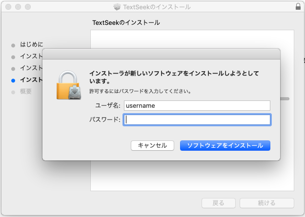 3.ユーザーアカウントのパスワードを入力し、[ソフトウェアのインストール]をクリックします。