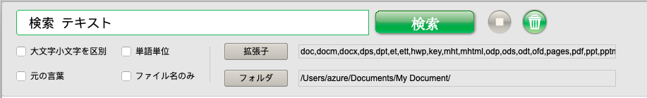 簡単モードは、一時使用モードです。エリア外のフォルダまたは頻繁に変わる検索範囲用に使われます。このモードでは、ユーザーが検索ボタンをクリックした後に文書のスキャンが始まるため、検索速度は遅くなります。しかし一致する部分を見つけるとすぐ検索結果を表示します。検索はユーザーが停止ボタンをクリック、または文書をすべてスキャンするまで続きます。"