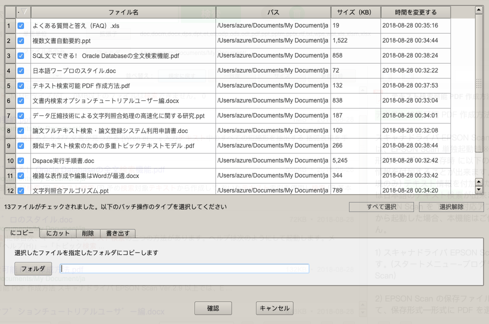 検索後、検索結果がある場合は、「一括操作」ボタンをクリックして、条件を満たすすべての検索結果をバッチ処理します。ポップアップウィンドウで、関連するすべてのファイルを指定したディレクトリにコピーして切り取るか、すべてを削除するか、すべての検索結果情報をエクスポートできます。