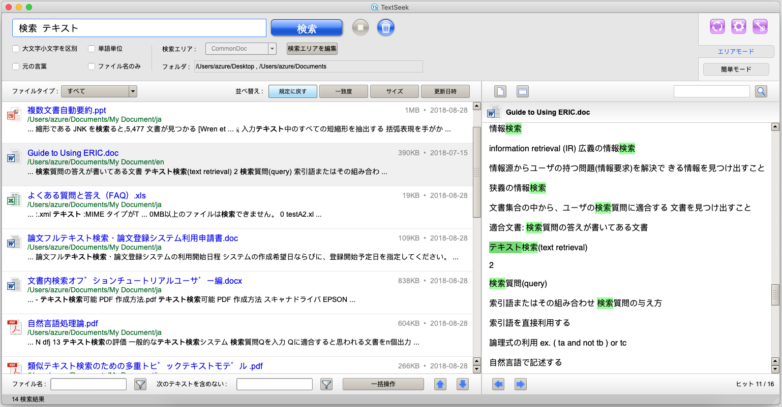 正規表現を検索するには、検索ボックスの先頭にキーワード「re:」を入力する必要があります。例えば、「re:\w+@gmail.com」はすべてのgmailメールアドレスに一致することができる。 TextSeekの正規表現構文は、次のようにpythonの正規表現構文と同じです。