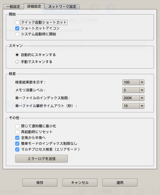 2.「スキャン」セクションでは、ファイル内容を自動または手動で更新するかどうか指定できます。