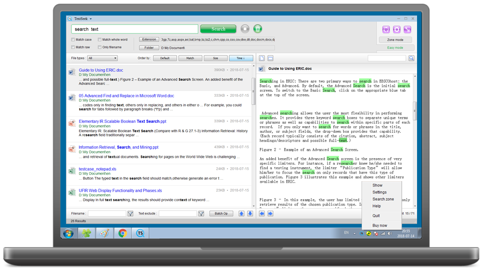 TextSeek는 Word, Excel, PowerPoint, PDF, HanWord, OpenOffice, Keynote 등을 포함한 다양한 문서 형식을 지원합니다. 모든 구문 분석 모듈은 TextSeek와 통합되어 있으므로 다른 패키지를 설치할 필요가 없습니다. 다른 데스크톱 검색 도구와 달리 파일 이름과 모든 문서 텍스트가 텍스트 누락을 방지하기 위해 검색 엔진에 포함됩니다.